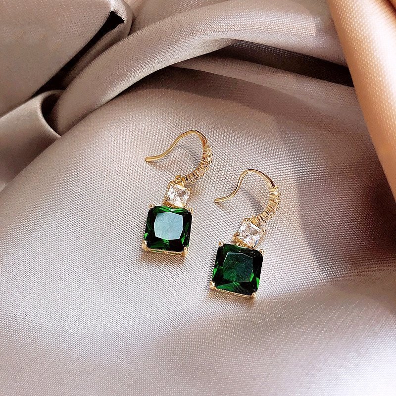 Alhena, our emerald inspired earrings are the perfect hue of deep green. These hook drop earrings sparkle so beautifully that pictures simply don’t do justice! As beautiful in the day as in the evening!